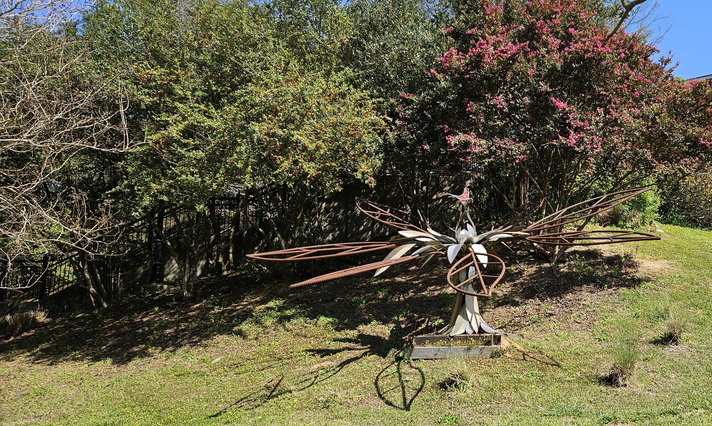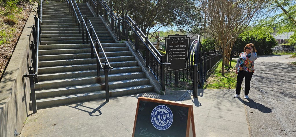 As we turned to go back up the slope to the parking lot (not feeling up to a four-mile jog on this particular day) we spotted this whimsical artwork just up from the workout center/playground. It’s a testament to a light-hearted spirit that we felt throughout our visit to Columbia.