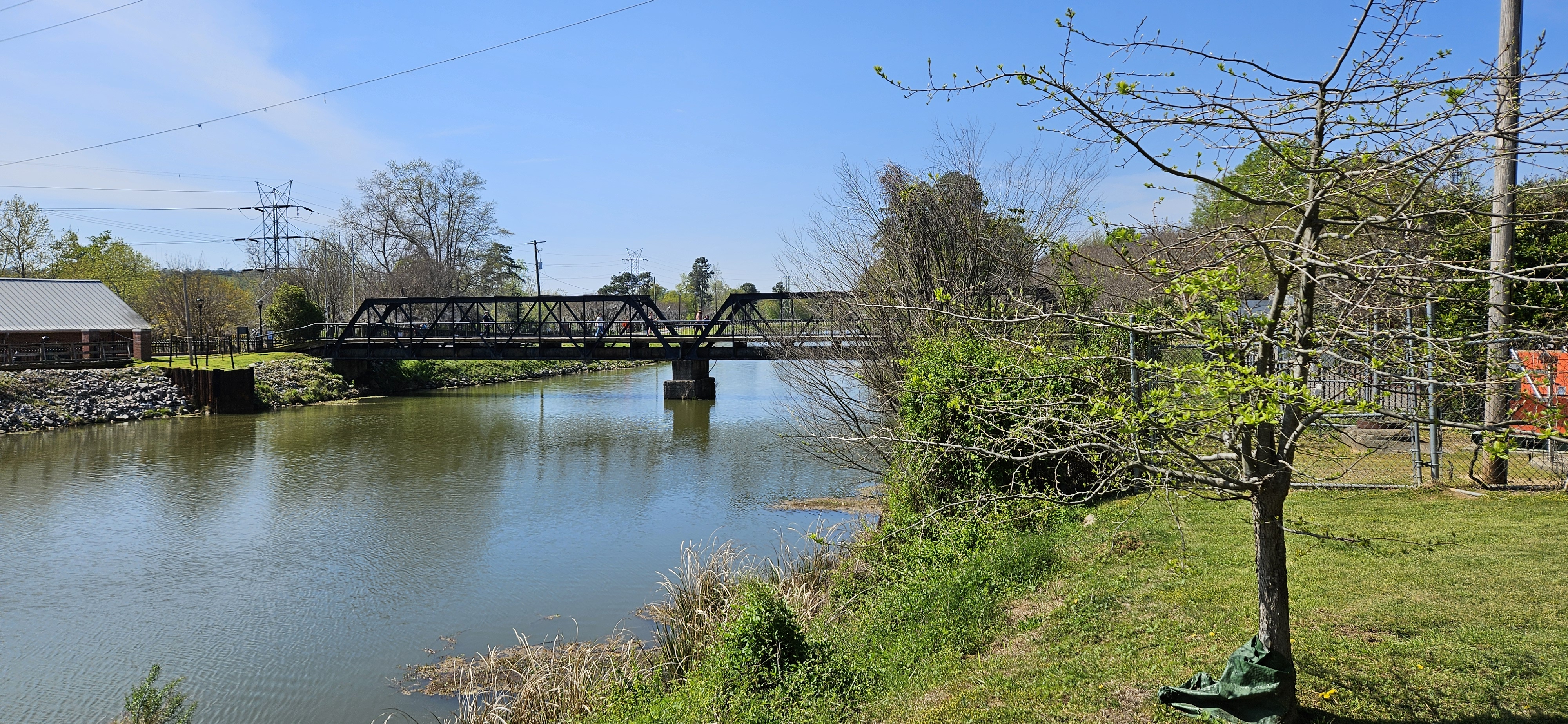 Outdoors in South Carolina is a lot different from outdoors in Northern California, where I spend most of my time. SC is green, the air is moist, there is water, and there is history. Columbia’s Riverbank Walkway is a wonderful illustration of the difference, with its effortlessly un-irrigated green spaces, its leisurely meanderings along the Columbia Canal, and its unexpected evocation of the workers who built the canal.