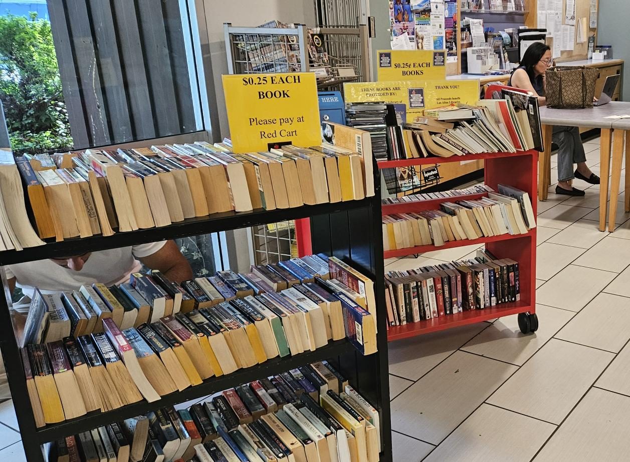 What space do we reserve for our chief fund-raisers, the Friends of the Library (FOL)? I’m personally addicted to checking out their 25-cent book cart, but I was surprised when a second book cart appeared recently, impeding access to the community bulletin board, the battery recycling container, and the free magazines. The FoL Sale bookshelves are expanding also, with a third book cart dedicated to teen lit, a table laden with puzzles, and additional tables for seasonal offerings or out-dated magazines. Is this a library benefit, or is it FOL mission creep?