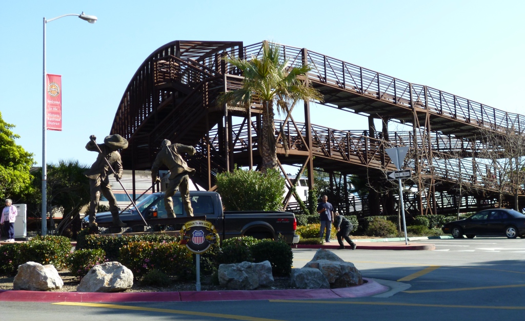 The upscale pedestrian mall which is tucked unobtrusively in between Monterey and Higueroa Streets. The architecture is designed to blend in unobtrusively with the mission and all those 1890’s buildings, but it includes a movie multiplex, Chico’s, California Pizza Kitchen, and of course a Peet’s coffee on one corner and a Starbuck’s on the other, if you’ve had enough of organic and artisan for awhile.