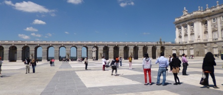 The palace makes Versailles look tawdry. I never imagined so much gold-and-silver-embroidered silk and velvet existed in the world. The extravagance is excused nowadays because the rooms are opened to the public in general for viewing and are otherwise used only for state occasions; the current king prefers to live in more comfort and less pomp in a smaller palace in the suburbs. But still, the amount of wretched excess is a little stomach-turning after viewing the homeless living in cardboard boxes in the arcades of the closed shops in the Plaza Mayor.
