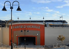 First wrinkle: There are now TWO Amtrak stations in Fairfield. Our faithful GPS unerringly directs us to the new one, Fairfield – Vacaville. I have been to the Fairfield station before it was re-labeled Suisun -Fairfield, and I am pretty sure this adobe “Transit Center” in the middle of a giant parking lot next to nothing at all is not it.