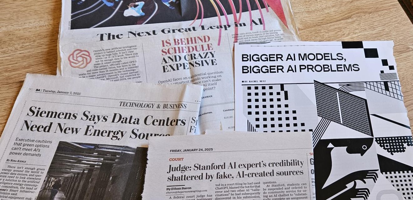If the degradation of the Internet were the only adverse side effect of AI’s rise, we would have enough to worry about. But AI is not just an attention-getting device. It is a terribly hungry and expensive device. According to Deepa Seetharaman writing in the Wall Street Journal [Dec 21, 2024, p. B1],” a six-month training run for a new AI product can cost around half a billion dollars in computing costs alone.” The data centers which provide the computing power that AI needs to run require hefty amounts of energy, water for cooling, and land to build on. Already some cities such as Atlanta are pushing back against the takeover of greenspace in its suburbs by proliferating data centers. [WSJ Dec 28, 2024]