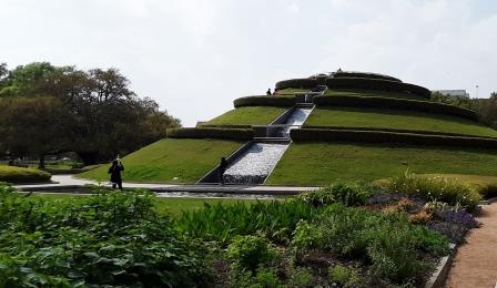 After lunch at the Saltwater Grill in the Strand area we walked to a quilt exhibit in the adjacent Federal Customs Office, now a museum in process of restoration. Another easy walk through historic neighborhoods took us to the “Bishop’s Castle” – one of the huge piles of Texas granite and Sandstone which has been preserved from the wreckers along Broadway – formerly the elegant center of town.
