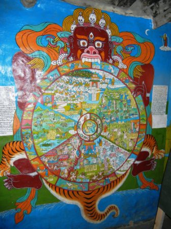 The Wheel of Life at the top of this post shows humans progressing toward heaven or hell (was Breughel influenced by Tibetan Buddists? Hell looks truly horrible!), but the entire Wheel is threatened by the God of Death ready to destroy the entire cosmos.