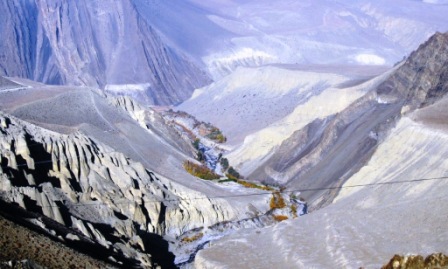 Kagbeni offers a lovely guest house in a very old Tibetan style village; We enjoy lunch on the sunporch and then spend the afternoon exploring the village. We visit the gaily painted Buddhist monastery which dates back to 749 AD, and has marvelous murals, mandalas, carved and painted pillars, and all sorts of ritual objects,