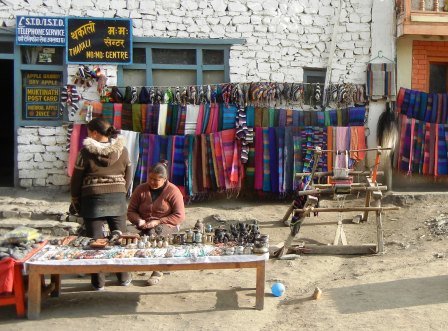 Since Mulktinath is almost the first point of civilization for people descending from the highest point of the full Annapurna circuit, it has also blossomed in the last few years (since the most recent Lonely Planet, even) with fancy new guest houses and scores of Tibetan refugees selling hand-woven belts, hand-knit hats, and scarves which may or may not be handwoven pashmina or yak fur.