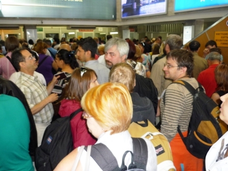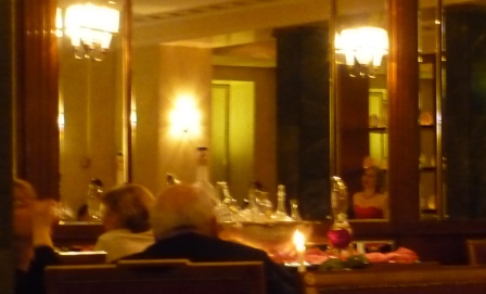 Dinner at “Il Terrazo” – the Terrace café reconfigured as a semi-luxe Italian restaurant. there were some glitches with the menu, but what we ended up with was just what Mom wanted (spaghetti with meat sauce- most basic and authenic) ; we both enjoyed the eggplant wrapped around fresh tomato and cheese; my “osso bucco” was really veal shank, not ox tail, but it was ok. And that will end our “gourmet” dinners for the cruise – the really swank restaurant was booked to overflow the afternoon of the first day, so we don’t have to deal with it.