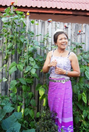 DM consulted with the concierge at the Lodge and found an afternoon cooking class for us at Asia Scenic Thai Cooking School. After an afternoon sight-seeing, we were picked up by “Mum:” the loud, brash, funny chef-in-charge. We added 5 Italians, 2 Dutch, and 3 Germans to the van, and off to Mum’s garden/house/outdoor cooking school. First an explanation of what is grown fresh in the garden (basil, mint, bean sprouts, lemongrass as expected; a peat wall unexpectedly sprouting mushrooms).